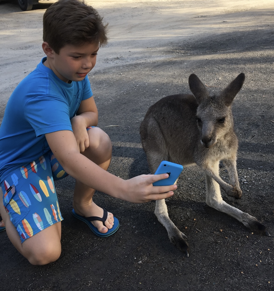 On the coastal drive from Sydney to Melbourne we had a chance to stop on several towns and one of them was Eden where we stayed for few days and visited several beaches. The best part was playing with wild kangaroos and wallabies. On this photo Mario was taking photos and selfies, unique experience.